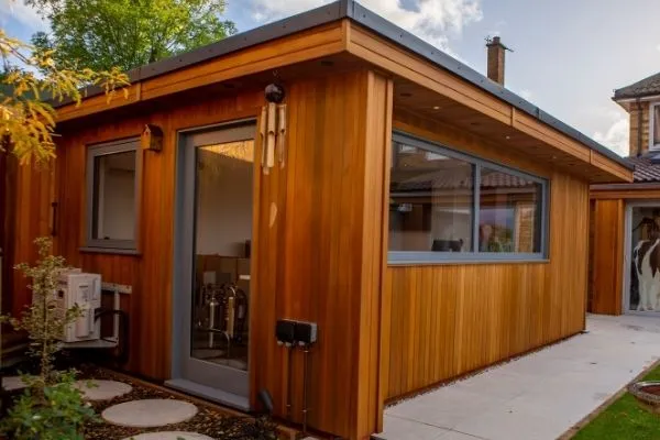 Built into your garden room roof structure, a window on a gable end offers a stylish addition to your outdoor building and looks fabulous from both inside and outside. A roof gable may typically be a triangular shape but offers ample space to get creative – be that installing multiple smaller windows with wooden frame for a rustic farmhouse look or one grand seamless window to cover the entire gable-end for a more modern aesthetic. You can even install a trendy chandelier to take centre stage and hang visibly from your gable window.